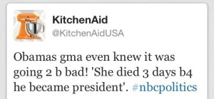 By now, you’ve heard of KitchenAid‘s unfortunate social media faux-pas. During one of the biggest media events in the past four years this obviously unintended ugly tweet was issued from the@KitchenAid Twitter account: